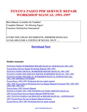 Presently you are looking regarding an 1998 Toyota Paseo Service Repair Manual Software example that we provide here inside some type of document formats many of these as PDF, Doc, Strength Point, and in addition images that will make it easier for you to create an 1998 Toyota Paseo Service Repair Manual Software yourself. For a more clear look, you are able to open several examples below. All of the good examples about 1998 Toyota Paseo Service Repair Manual Software about this web site, we get from a number of sources so you may create a better record of your own.